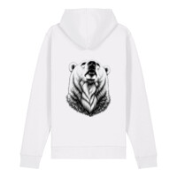 Self-fabric lined hood. Flat drawcords in matching body colour. Stitched buttonhole eyelets. Inside herringbone back neck tape. Self-fabric half moon at back neck.1x1 rib at sleeve hem and bottom hem. Flatlock topstitch on all seams. Kangaroo pocket with flatlock topstitch. GOTS certified, OEKO-TEX certified, Vegan certified, Fairwear.