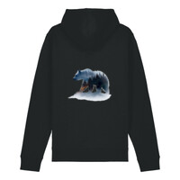Self-fabric lined hood. Flat drawcords in matching body colour. Stitched buttonhole eyelets. Inside herringbone back neck tape. Self-fabric half moon at back neck.1x1 rib at sleeve hem and bottom hem. Flatlock topstitch on all seams. Kangaroo pocket with flatlock topstitch. GOTS certified, OEKO-TEX certified, Vegan certified, Fairwear.