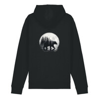 Self-fabric lined hood. Flat drawcords in matching body colour. Stitched buttonhole eyelets. Inside herringbone back neck tape. Self-fabric half moon at back neck.1x1 rib at sleeve hem and bottom hem. Flatlock topstitch on all seams. Kangaroo pocket with flatlock topstitch. GOTS certified, OEKO-TEX certified, Vegan certified, Fairwear.