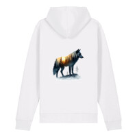 Self-fabric lined hood. Flat drawcords in matching body colour. Stitched buttonhole eyelets. Inside herringbone back neck tape. Self-fabric half moon at back neck.1x1 rib at sleeve hem and bottom hem. Flatlock topstitch on all seams. Kangaroo pocket with flatlock topstitch. GOTS certified, OEKO-TEX certified, Vegan certified, Fairwear.